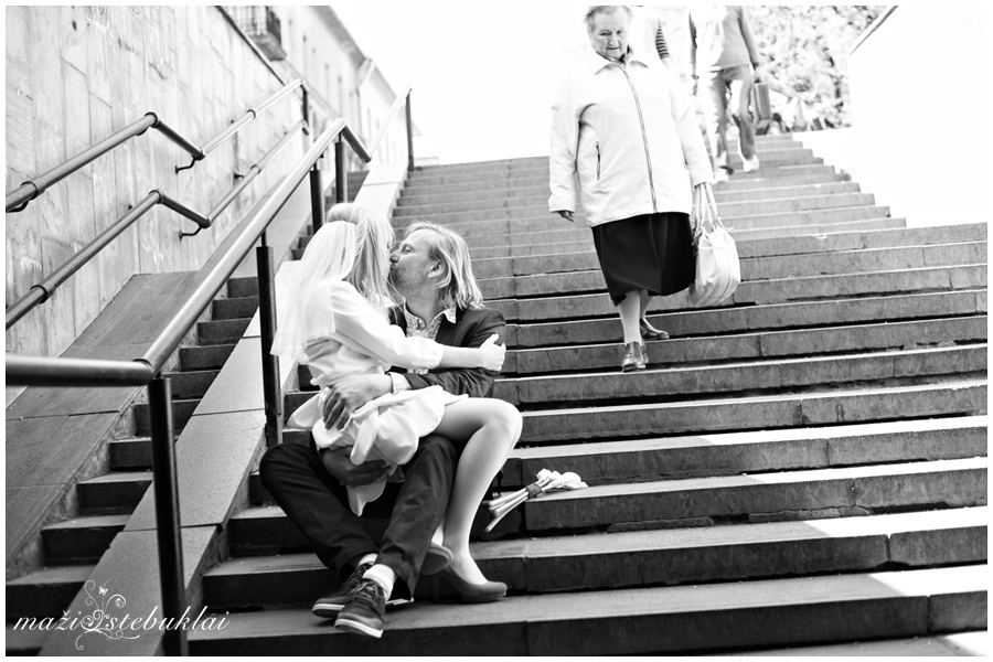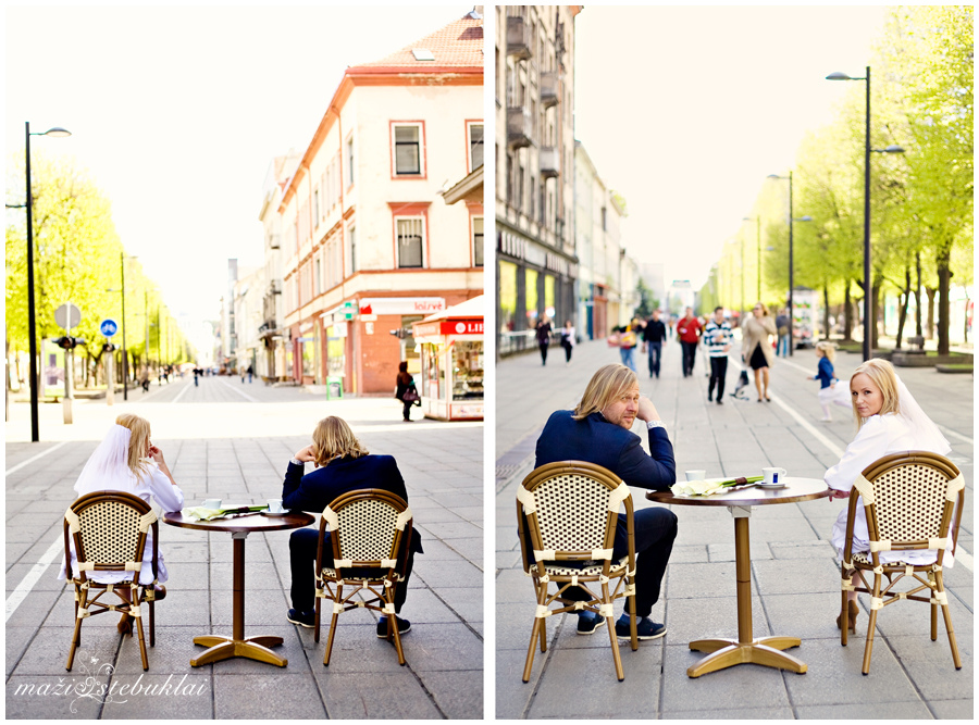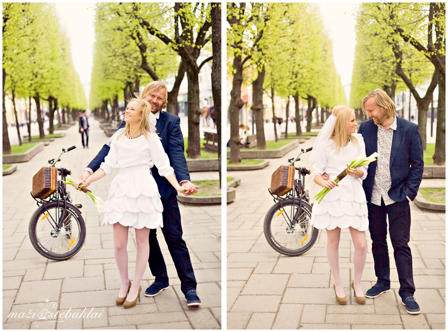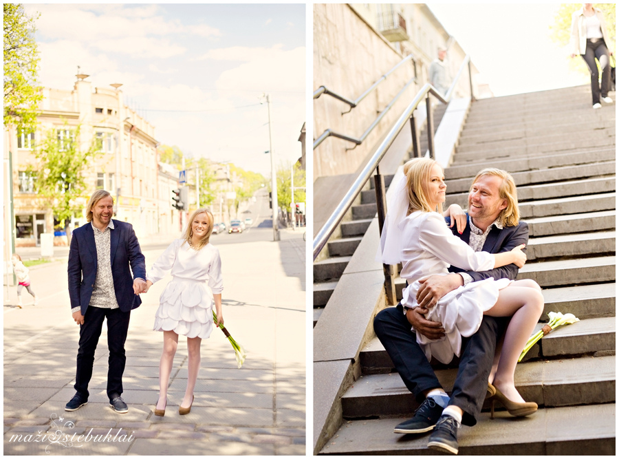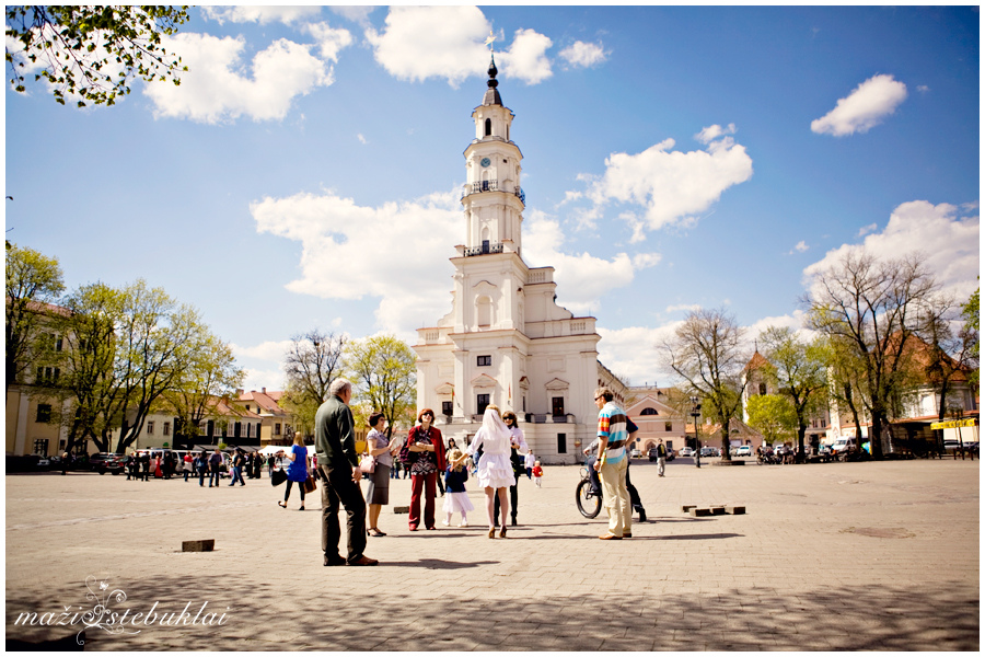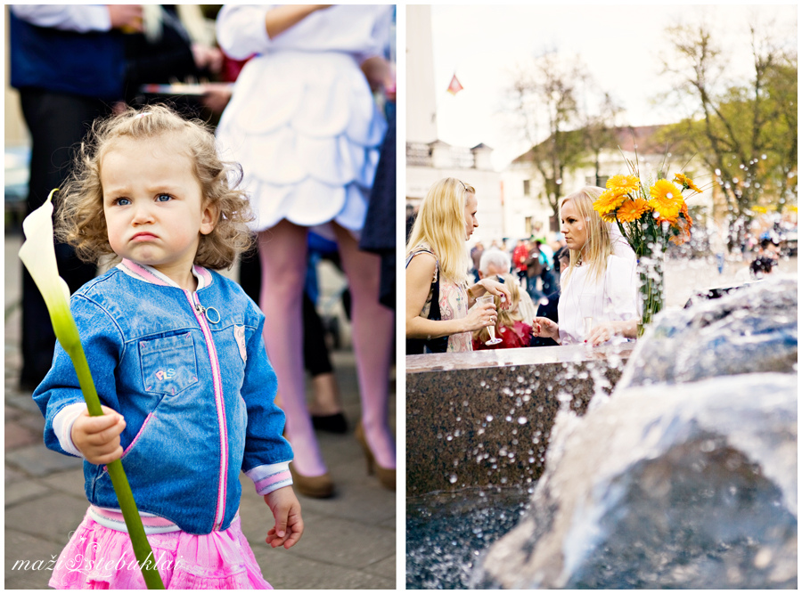 Taigi… Nijolė ir Vaidas. Vieną tikro gilaus pavasario dieną susikibę rankomis keliauja į Kauno rotušę lydimi baltapūkės dukrytės. Devyni metai, o jausmai kaip gimę vakar. Jaunikio apranga – 10, Nuotakos suknelė – net neturiu žodžių (vis dar svarstau, kas galėjo ją sukurti). Bateliai – tobuli.