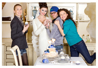 Iš dešinės: fotografė Reda, žurnalo redaktorė Goda, stilistas Liutauras, viršelio mergina Elona ir …
