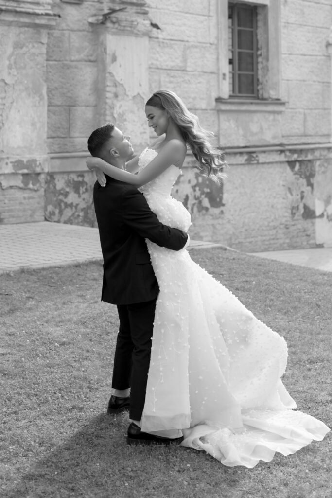 Karolina žinojo tik viena – vestuvinė suknelė turi būti nepaprasta. „Norėjau kažko ypatingo. Džiaugiuosi paklausiusi planuotojos patarimo aplankyti „Vamp” mados namus. Pirmasis vizitas, pirmoji pasimatuota suknelė ir iš karto buvo jausmas, kuris nepalieka vietos abejonėms net matuojantis kitas sukneles. Supratau, kad tai – Ta suknelė. Ji buvo nuostabiai graži ir labai patogi. Vestuvių dieną sulaukiau tiek daug pagyrimų, kad tokios vestuvinės suknelės svečiai dar nėra matę.“